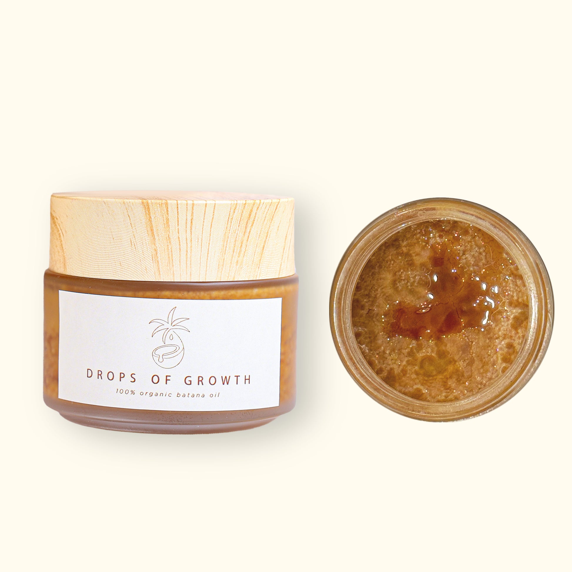 Batana oil heals and nourishes skin, reduces inflammation, soothes irritation, and promotes hair growth, making it ideal for damaged hair and skin